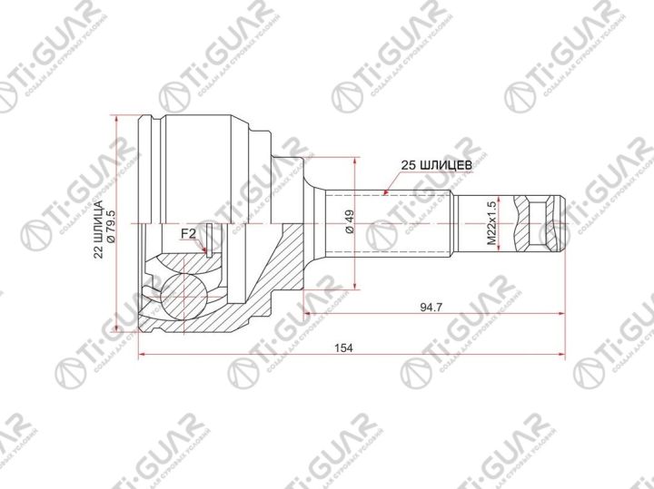 ШРУС наружный /TI-GUAR для Nissan Tiida 2005-2008 JC11 MR18DE /22*49*25; TG-7481; (NI-E081 NI-081) 39100EE70B 39101EE70A 39101CJ90A
