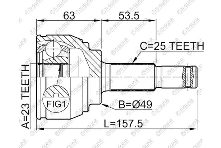 ШРУС наружный /правый /левый /TI-GUAR для Nissan Tiida 2007-2010 Sedan; 23*49*25; TG-7485; (NI-085) 39100EE32B C9211EL00B 39101EL10B